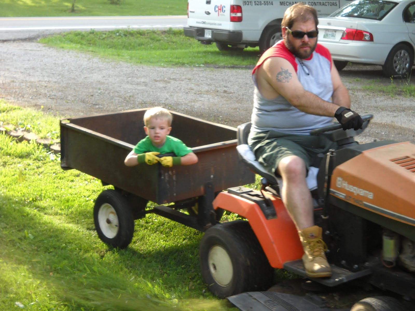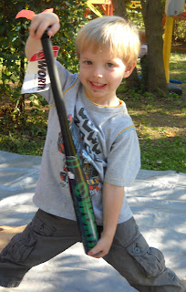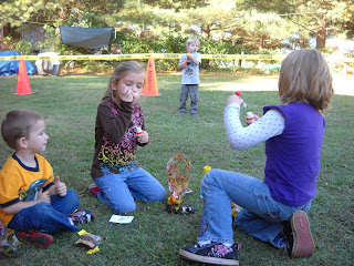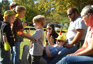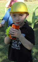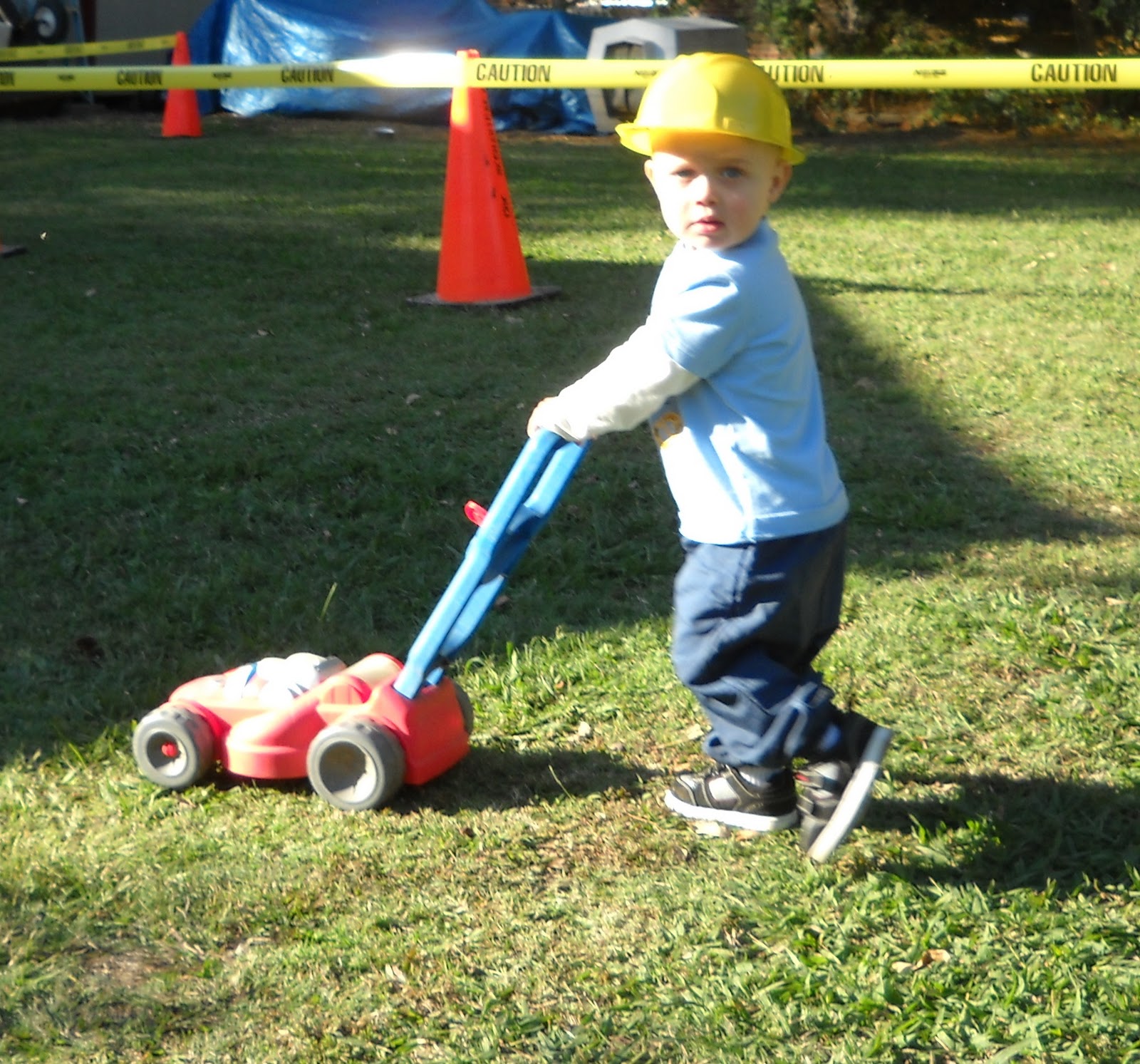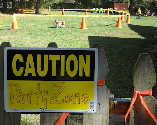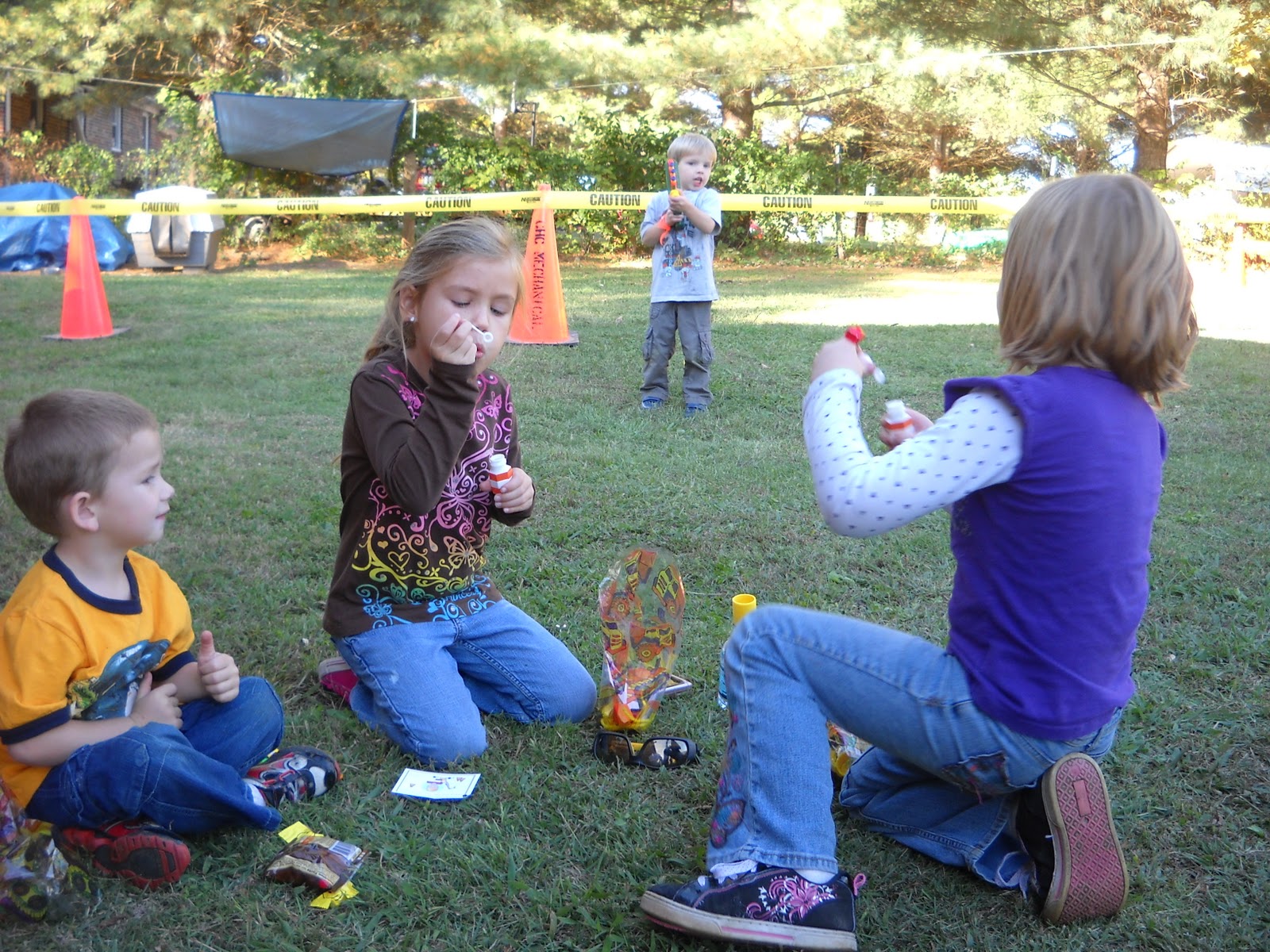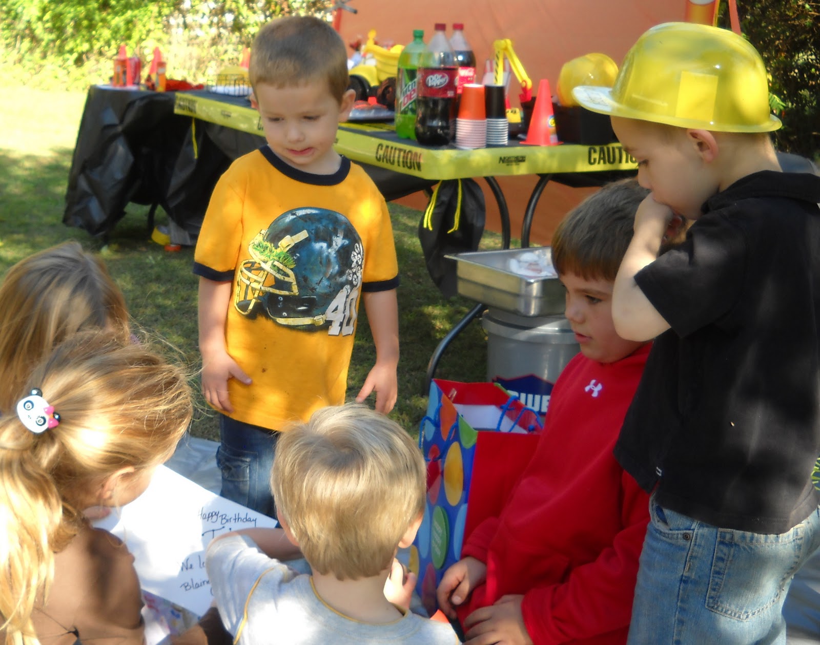kaye gave an invite to every kid in t's headstart class and several friends were also invited. kaye, bilbo and i put a lot of time and effort into making it a great day for t.willie. we put up construction caution tape everywhere and made "road work" signs for along the driveway.