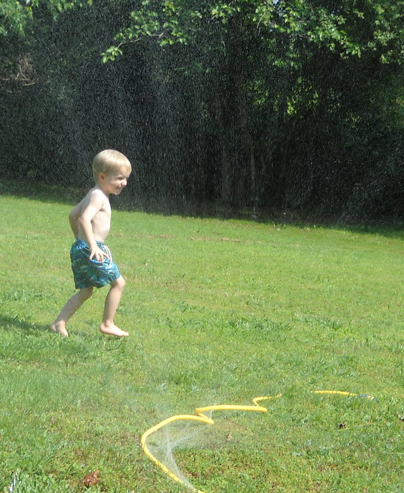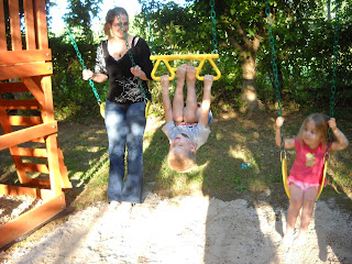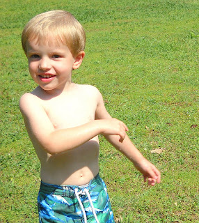 here is t.w. when everyone was singing "happy birthday". he's so cute! i just love that boy!although only one kid from school came, we had 9 kids attending. there was a lot of fun going on. the back yard was a flurry of activity: