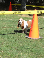 bilbo brought home several construction cones to rope off buster's large doggie area. it worked great but buster would rather have joined the party!